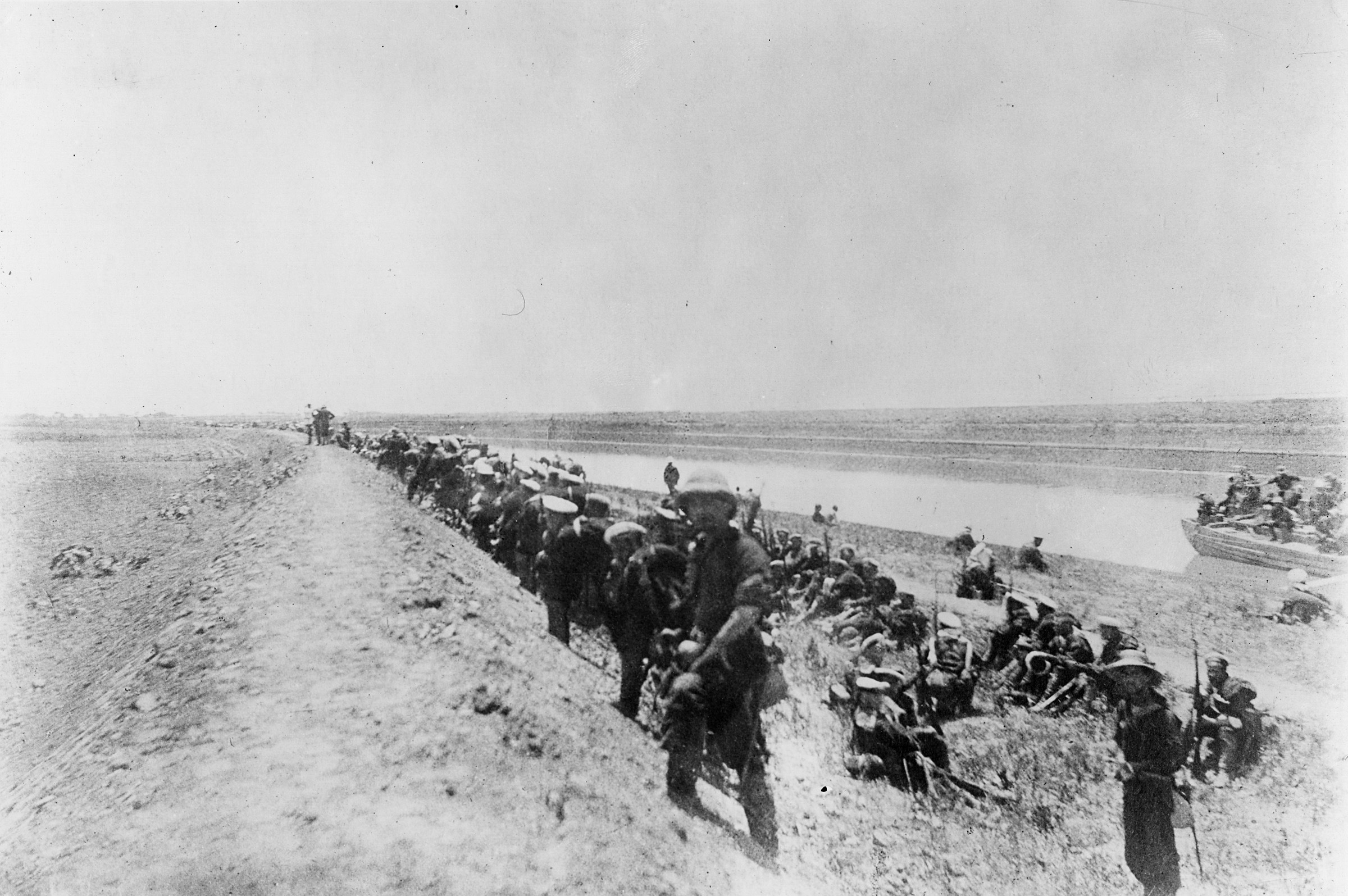British and American sailors line the Pei-Ho River in an engagement with Chinese Boxer revolutionaries in 1900, outside Peking.