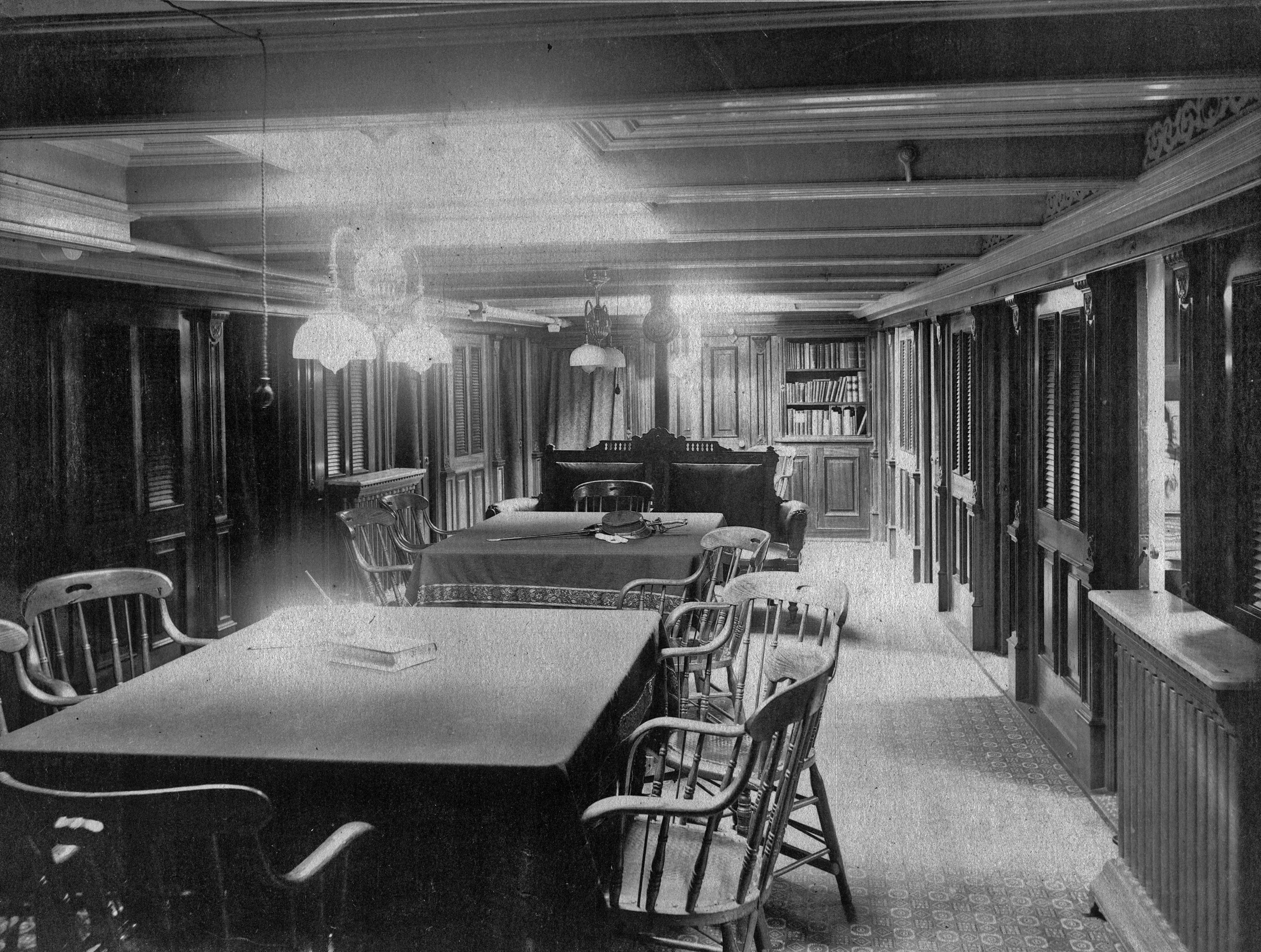The luxurious wardroom of the protected cruiser Atlanta, seen in 1886.