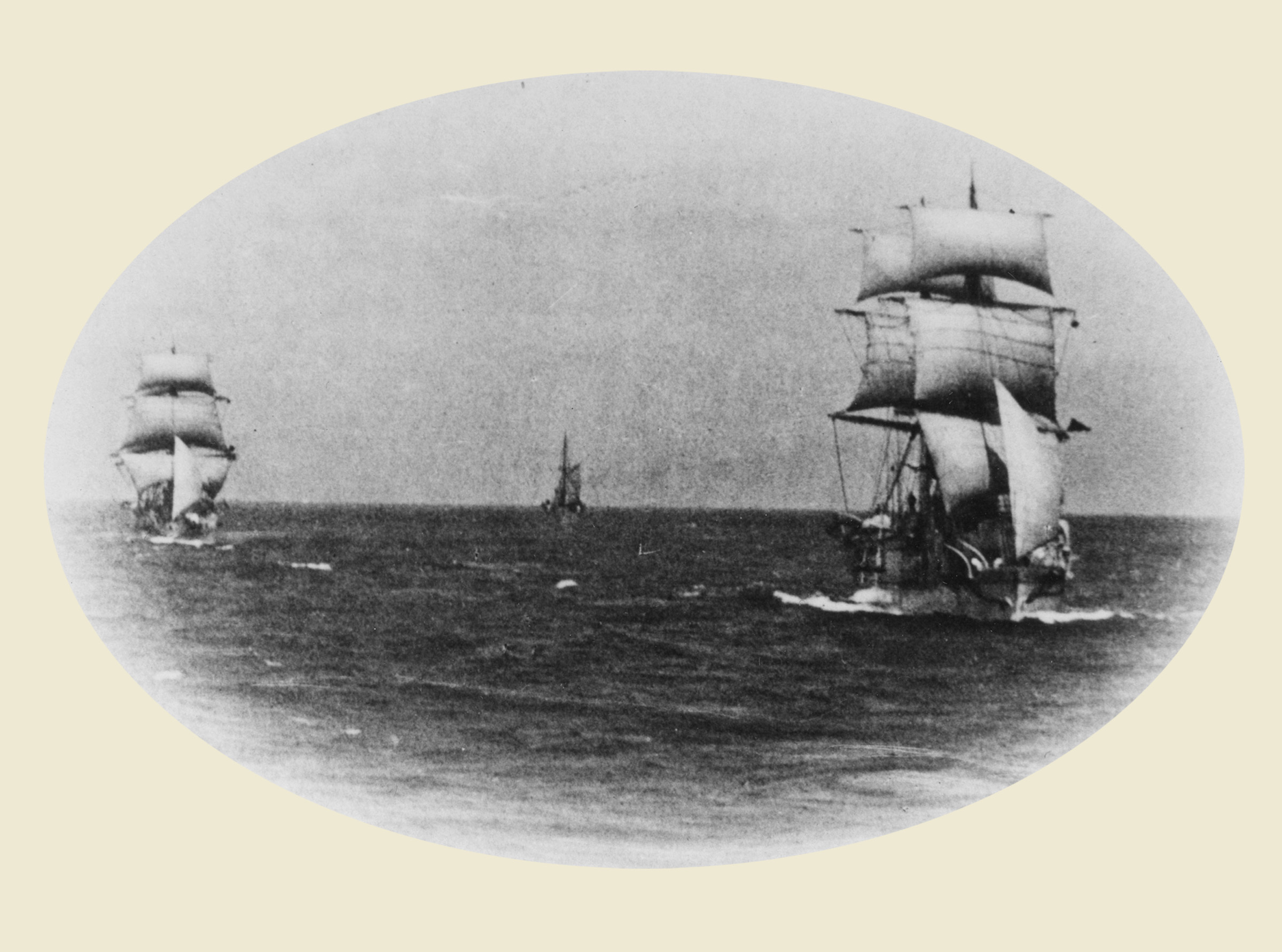 USS Boston and USS Atlanta under sail circa 1889, followed by USS Yorktown.